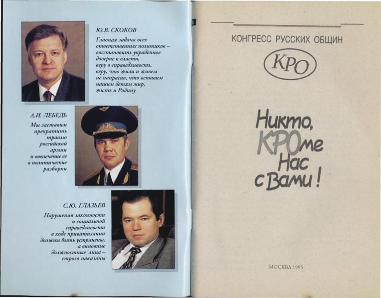 "Никто КРОме нас с Вами!" (агитационная брошюра, осень 1995 г.; первый разворот)