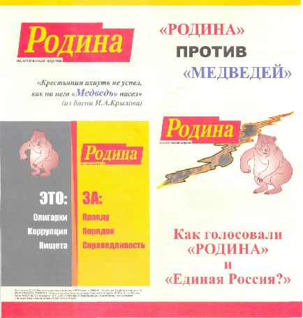 "Родина" против "медведей" (листовка-буклет партии "Родина", ноябрь 2005 г., внешний разворот)
